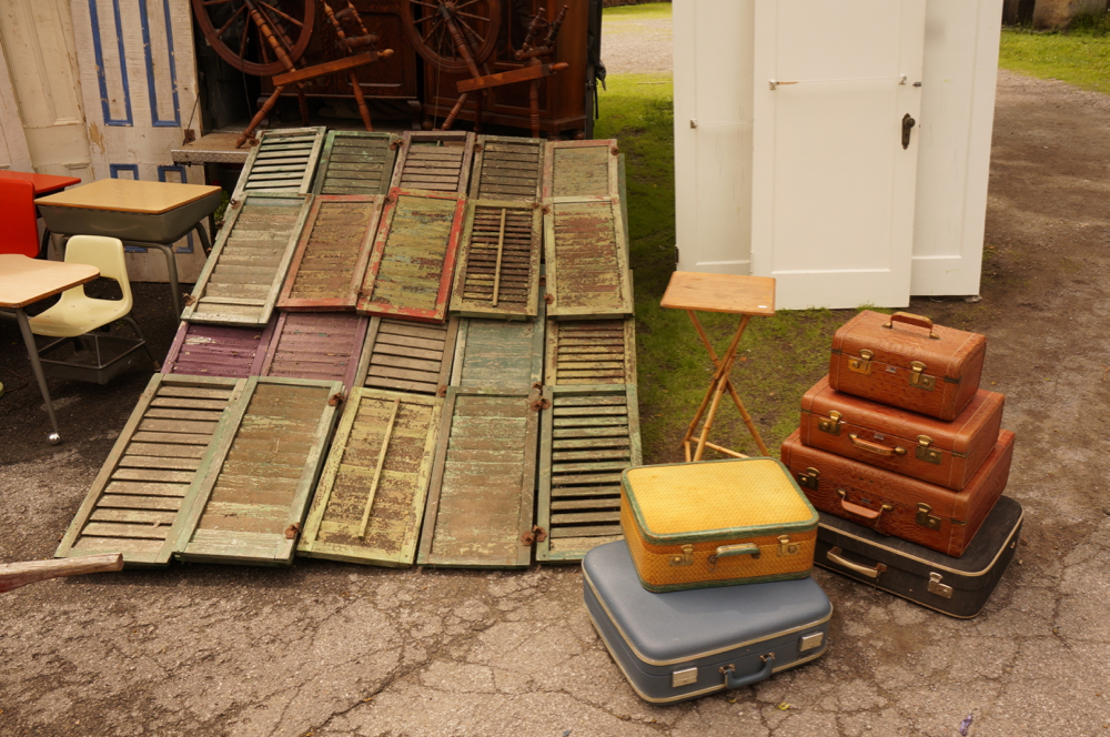 Nouveautés du 12 juin 16 : Échelles de bois, caisses de bois, volets, portes, rouets, poulies, cordes, planches à laver, tordeurs, valises, bureaux d’école, bidons de lait, fenêtres, pharmacie, lampes, ventilateur, pelles et beaucoup plus ….